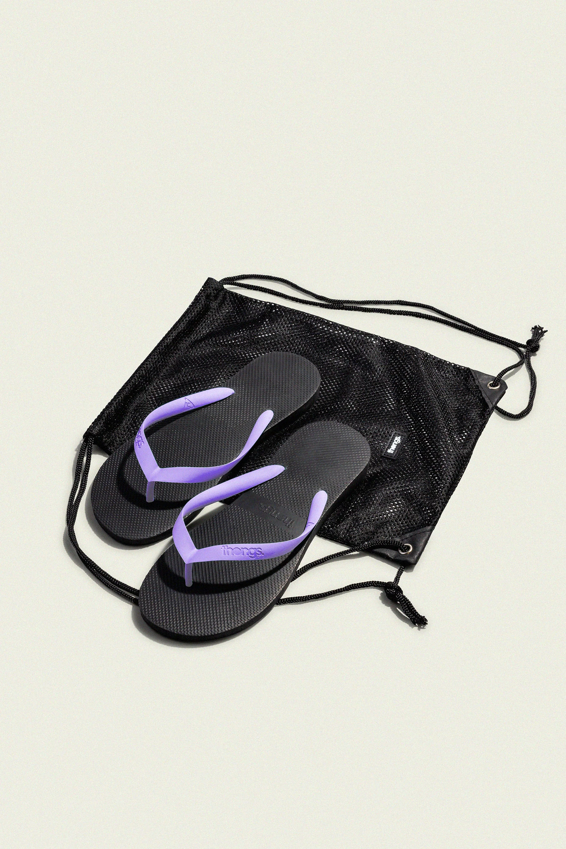 Every pair of 'Nostalgia Series' Thongs comes in a reusable black mesh beach bag.