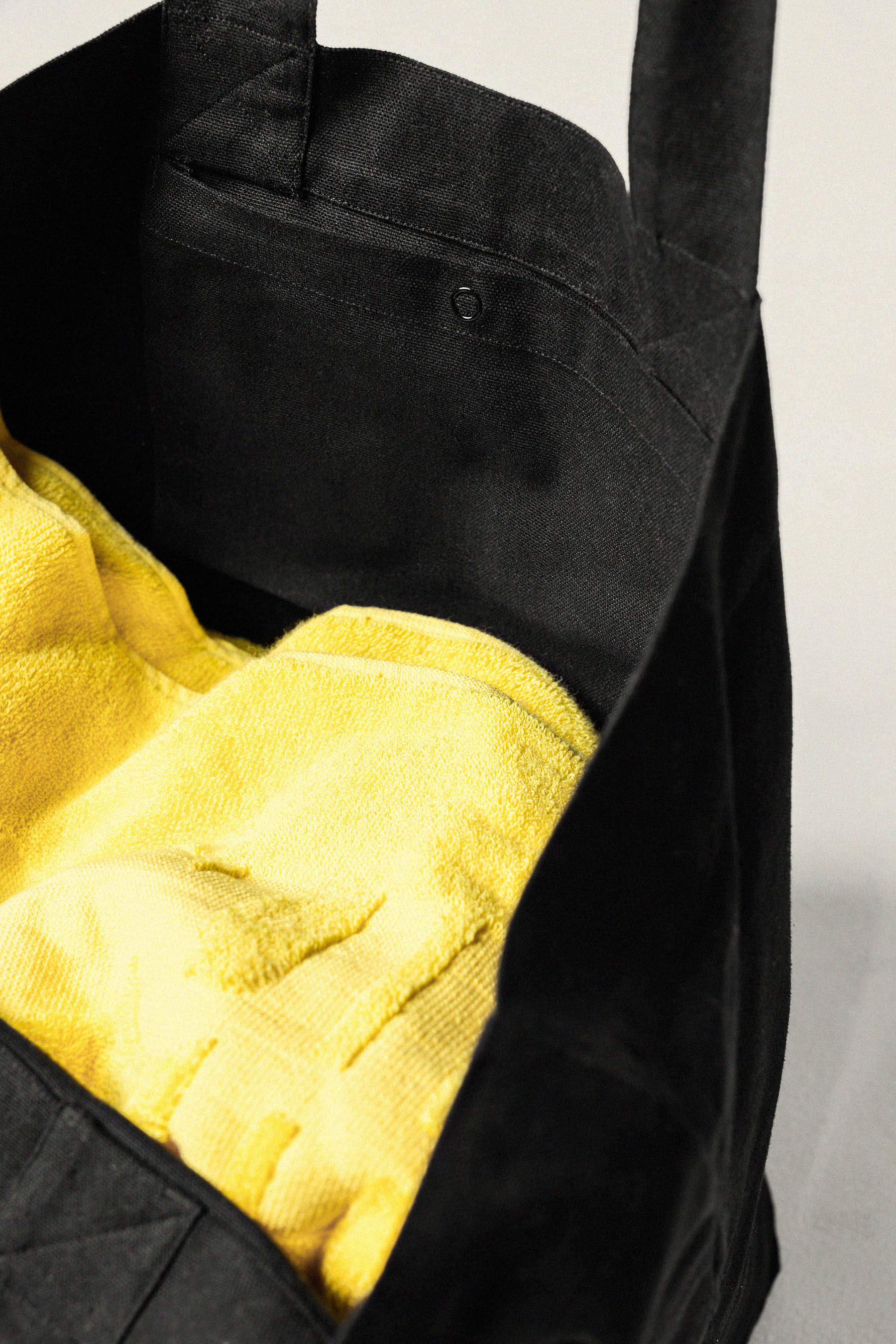 Made from 100% recycled cotton canvas, topstitched hem at top of bag, features top handles, a printed logo to the front, side gussets for extra room and an internal snap-buttoned pocket for all your valuables like phone, wallet and keys.